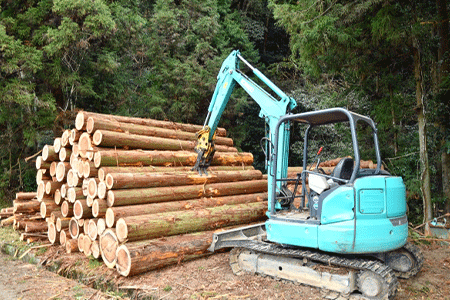 伐採された木は利用しやすい長さに切られ、丸太になります。これを玉切りといいます。